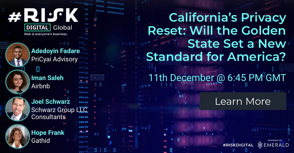 PriCyai Advisory is pleased to share key reflections from our participation in the #RISK Digital Conference, hosted by GRC World Forums. Our Senior Consultant, Adedoyin Fadare, contributed to a timely panel discussion titled “California’s Privacy Reset: Will the Golden State Set a New Standard for America?”, which examined the sweeping privacy and AI reforms emerging from California in 2025.